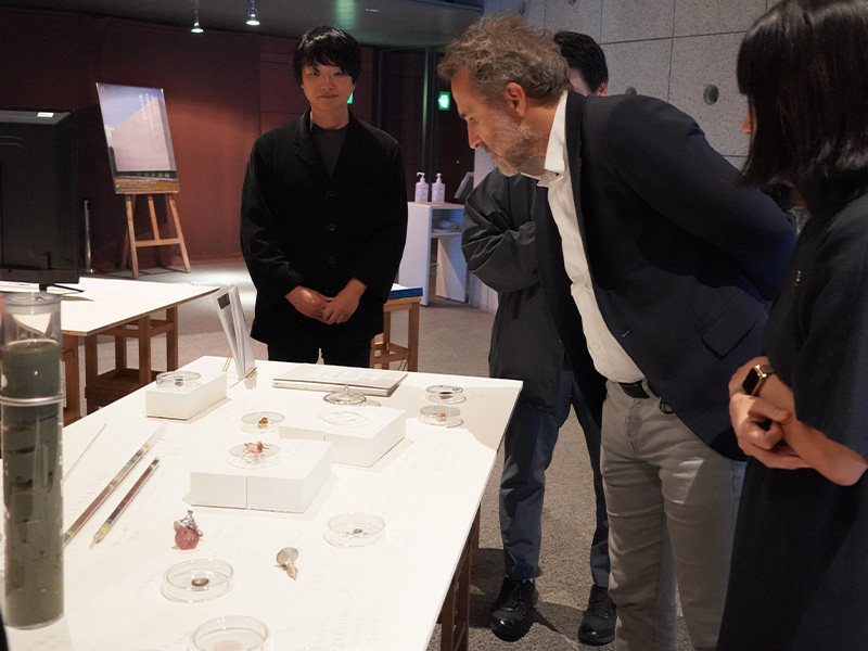 また滞在中、同時期に開催されていた「芸術未来研究場展 2025」にも足を運ぶことができました。Tara JAMBIO ブルーカーボンプロジェクトに参加したアーティストの作品を鑑賞し、日比野克彦さんとも交流する機会に恵まれました。