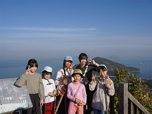 2日目も快晴。朝は粟島にある城山への登山からスタート。子どもたちは全員元気いっぱいで、誰ひとりリタイアすることなく登り切りました。