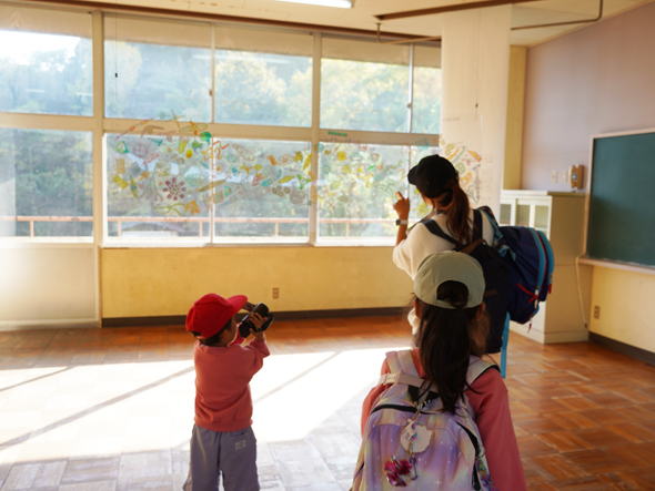 下山してからは、いよいよ粟島の思い出アート制作。日本画家の彩蘭弥さんを講師にお迎えし、万華鏡を作りました。外側のデザインは粟島をテーマにそれぞれが描いたもの。万華鏡になるパーツは西浜で集めたマイクロプラスチックや貝殻。粟島の思い出が詰まっています。