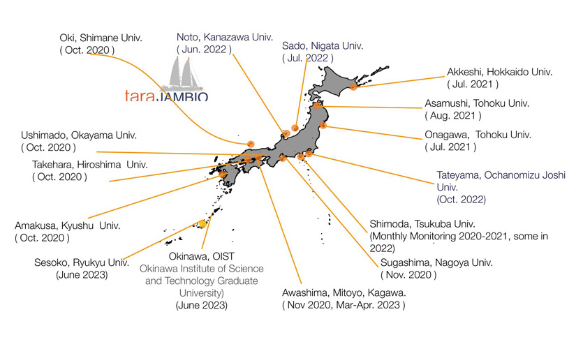 タラ オセアン ジャパンはこうした課題を背景に、JAMBIOと協力し、日本発のローカルプロジェクト「Tara JAMBIO マイクロプラスチック共同調査」を立ち上げました。本プロジェクトは、日本沿岸海域におけるマイクロプラスチックの実態把握とその影響の研究、そして科学・教育・アートを通した啓発活動を目的に、2020年から実施しています。
