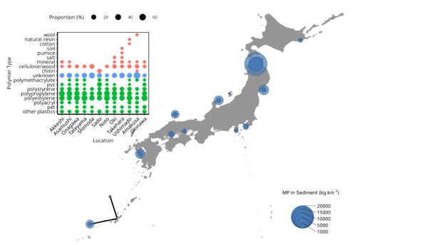 論文タイトル: An Integrated Assessment of Microplastic Pollution in Coastal Surface Water and Sediment of Japan. 論文著者:Ramtahal, J.J., Sugimoto, K., Phan, S., Patouillet, Y., Troublé, R., Luscombe, C.K., Agostini, S.